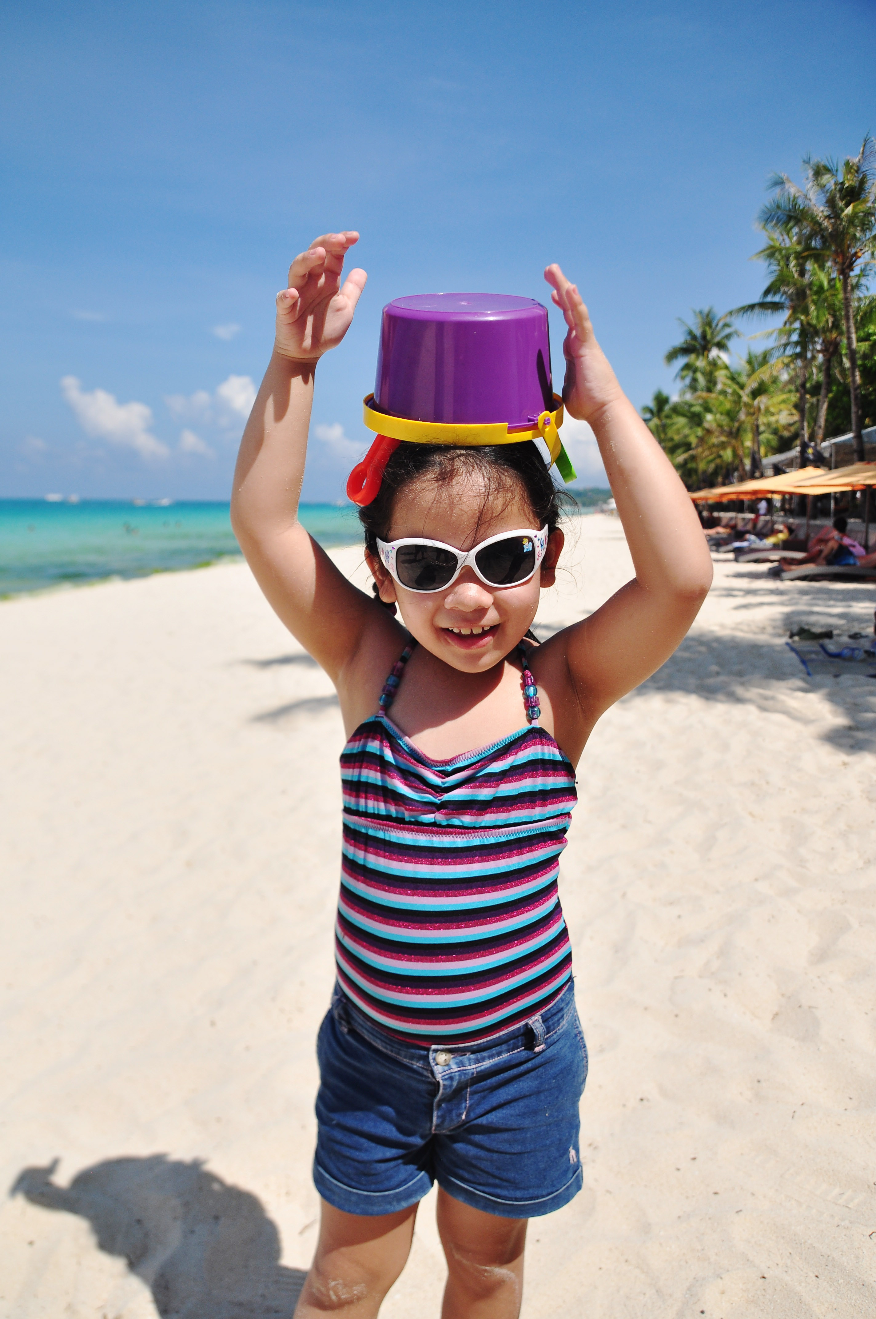 Armed with a plastic bucket, some shovels, and a desire to create the best sand castle in Boracay, Dani was ready for her second beach experience. When we got there, she jumped right into the water, which surprised me because I thought she hated swimming. She stood by the shoreline and jumped and jumped, laughing all the while. After some time, she sat and played with the fine white sand, gathering a handful and letting it slip slowly through her fingers.