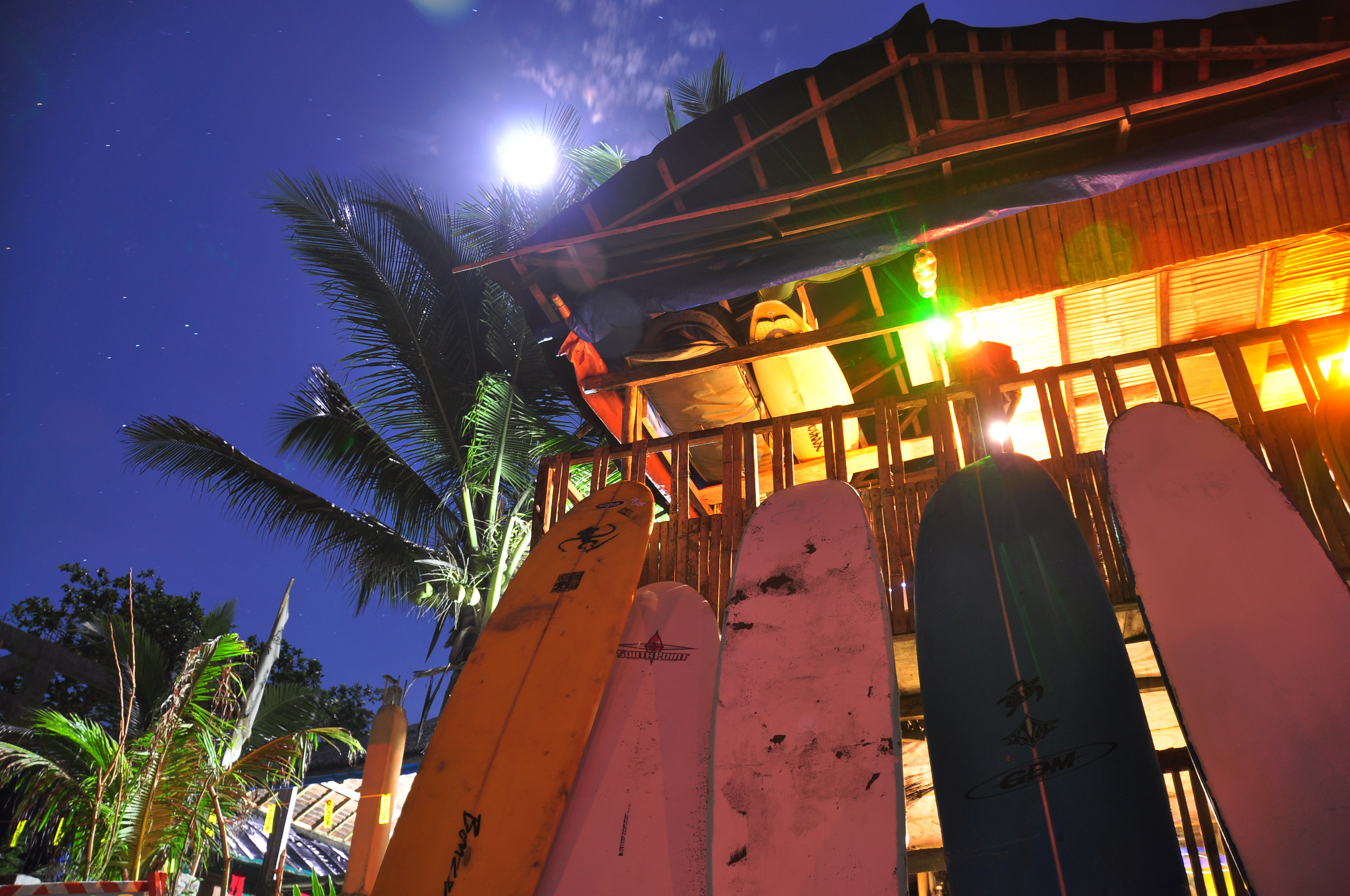 So no, I don’t have a really cool pic of myself on the worn out, yellow long board that I used for three hours, not even one where I’m just standing beside it. But I do have a great memory of my friends and I lying on our long boards in a line, waiting for our instructors to shout “Ready!” Of us drinking beer and then digging into Styrofoam containers stuffed with deliciously grilled pork belly and white rice as we sat in a nice little shack along the beach. Of gathering around a campfire during acoustic night in Panatag, where surf boards turned into tables topped with soft drink, Emperador, and beer bottles, and more grilled pork belly. Of shots (and not remembering anything else…just kidding) taken in turns as guitars strummed out sweet melodies while a full moon, at first covered in thick clouds, rose high above us and illuminated our small, spontaneous party. Of waking up the next day and trying once again to surf despite (tiny) jellyfish stings, sore muscles and aching limbs.