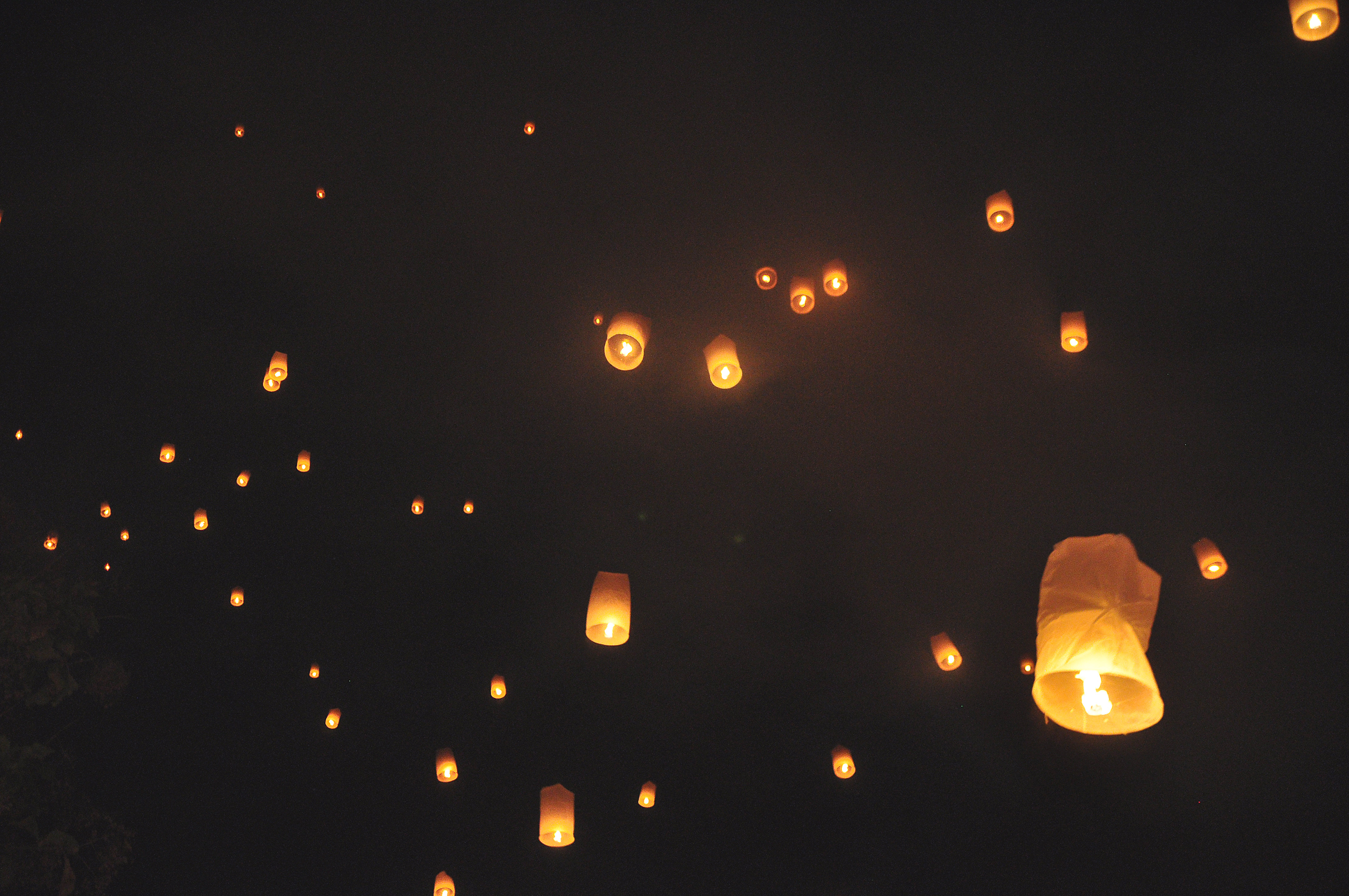 Shortly after graduating from college, I saw an image of the floating lanterns in Chiang Mai, Thailand. It was shot from below, so it’s as if you’re actually there with the people, looking upwards at a sky filled with wonderful glowing lights. The photographer, Chumlong Nilkon, explained,Β “We believe that it’s a symbol of problems and worries floating away.” It was, at the time, an impossible dream. Nevertheless, I saved the image, like a dutiful HR officer putting a resume on file, setting it aside togetherΒ with the rest of my impossible dreams,Β and told myself that one day, if I had the time and the means, I would make it happen.