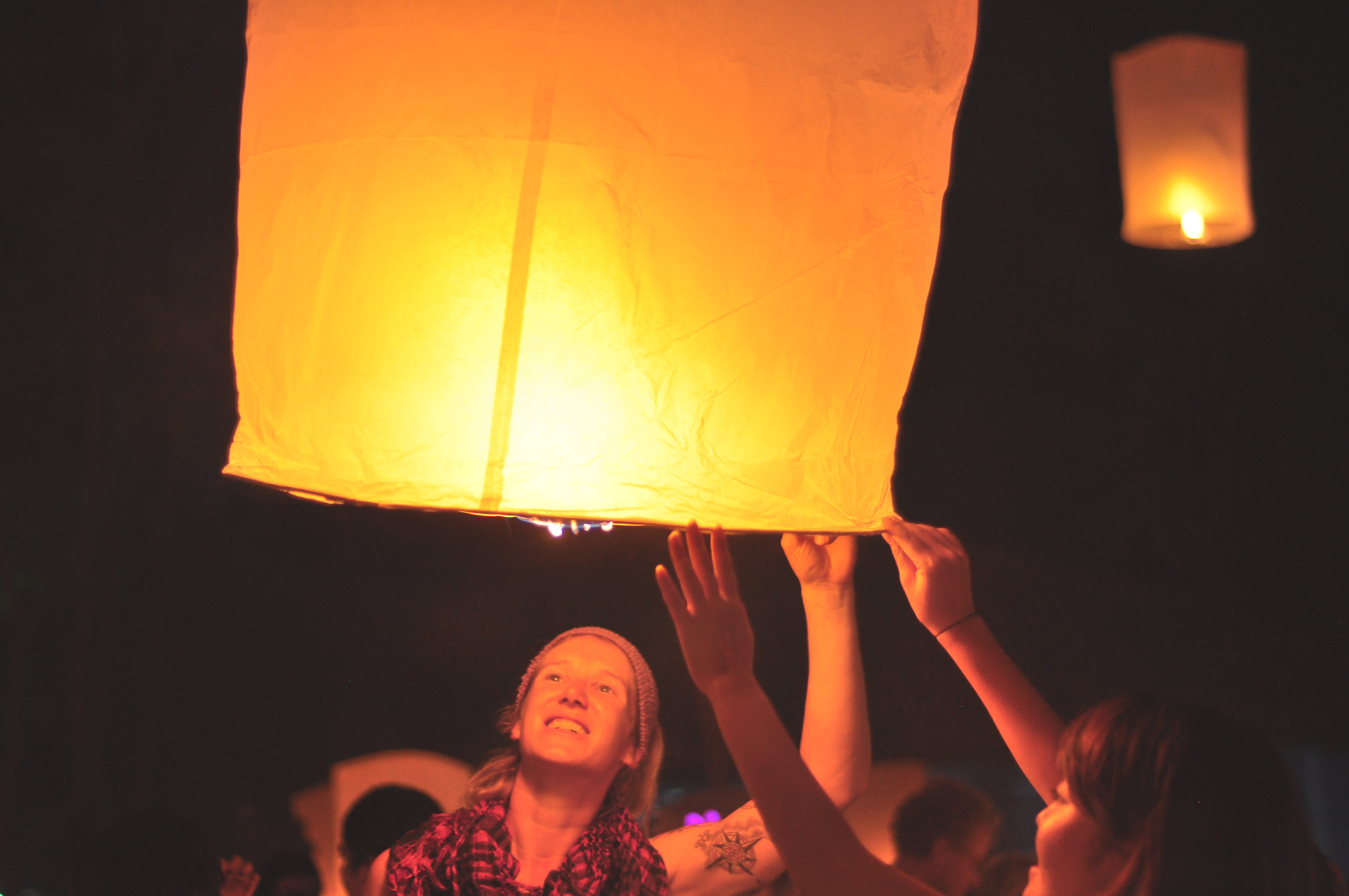 All that disappeared when we came to the clearing. Sure, we missed the release, but just to be physically there was overwhelming and beautiful. There were candles all around and people were lying on the grass, watching the sky. When most of the people had left, we bought our own paper lantern and released it into the air. It floated gracefully with the others, carrying with it our whispers of gratitude.