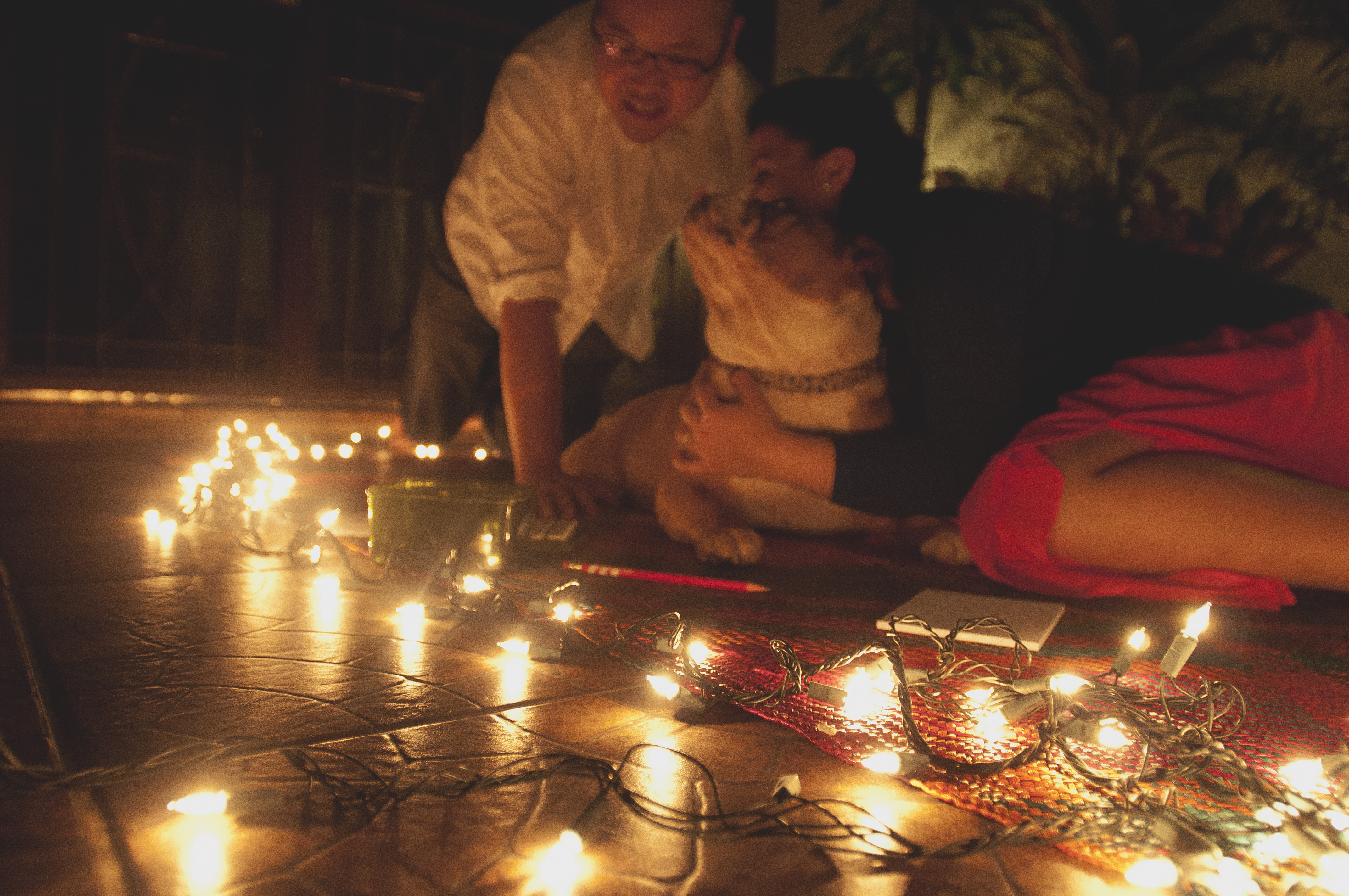 Anyway. That’s really the story behind this photo set. I was nervous at first because I’m really not a wedding/prenup photographer and I was afraid I would mess it up. But we all had fun fixing up the house and arranging the shoot as a family. I guess that’s what matters in the end, right? My mom, who is an extremely OC/creative person, did the “set design.” And my dad helped me with the lighting and equipment. Pebbles, Ate Din and Kuya Ari’s fat bulldog, didn’t want to be left out so we included her in a lot if not all of the frames. 🙂
