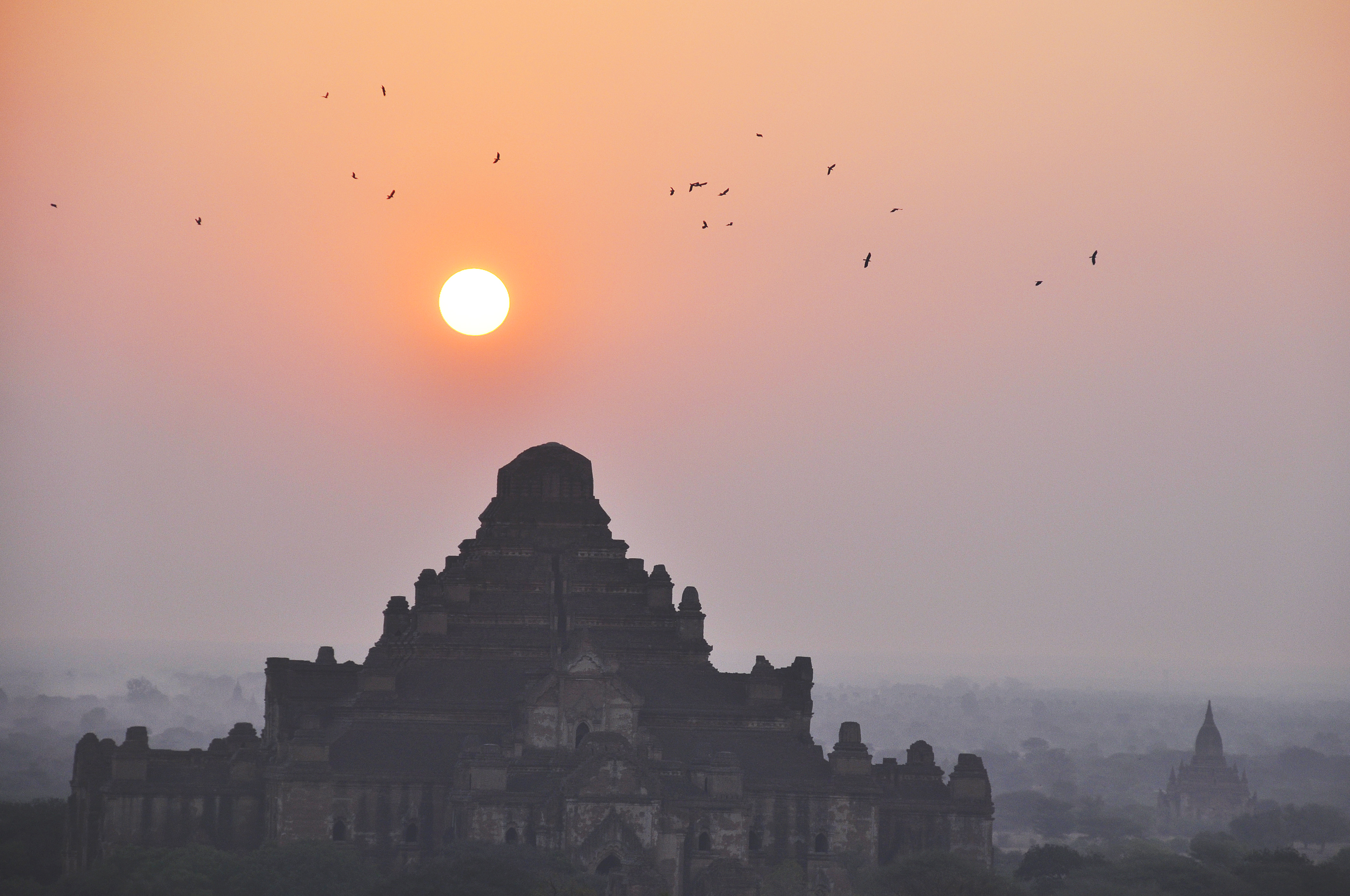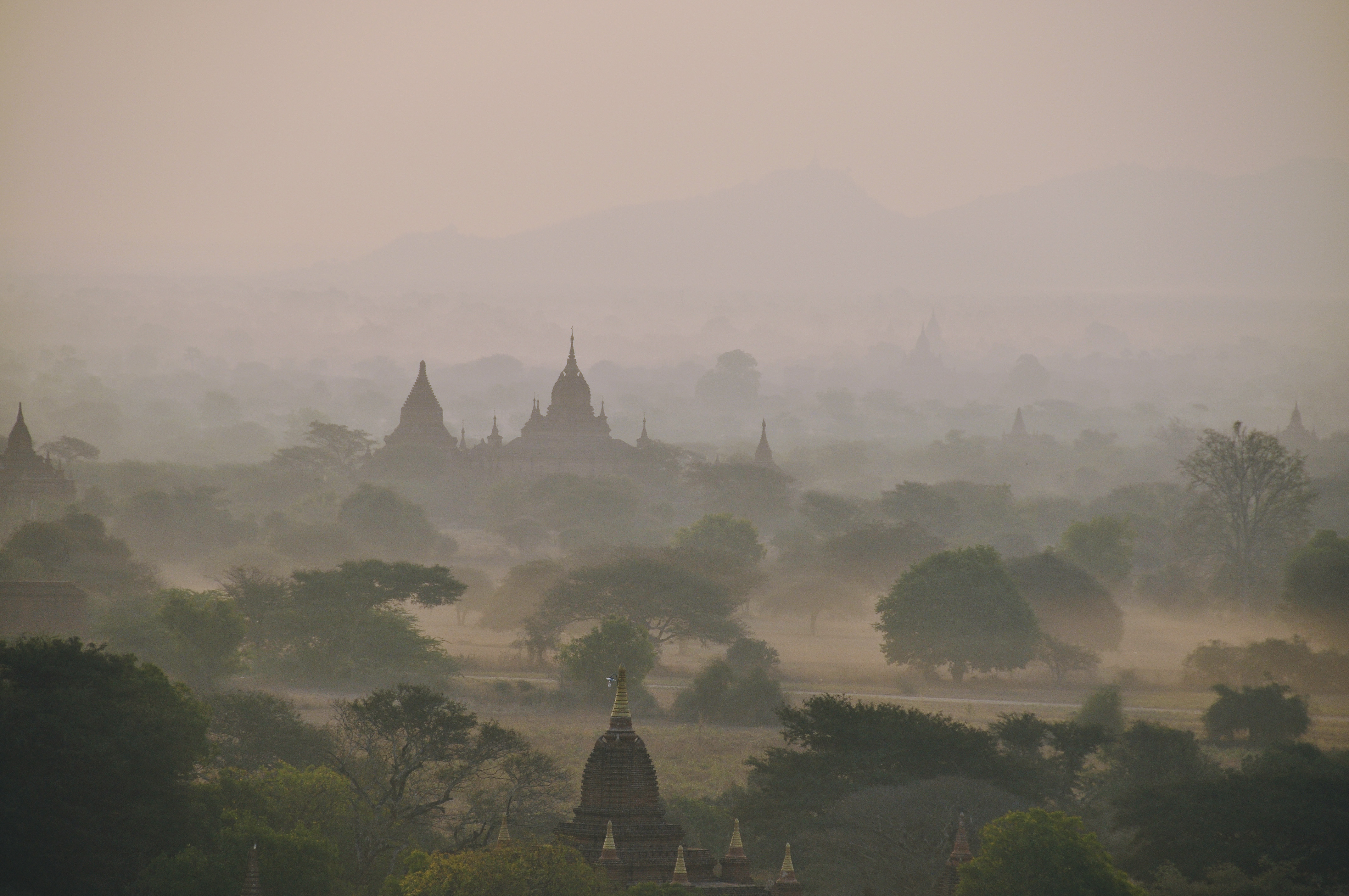 To say that the land is still untouched would be a lie. What Pablo Neruda said of his arrival to Rangoon in a poem, I say too: I came late to Bagan; everything was already there. The hotels, the restaurants, the tourists – all of them had already laid their claim to the land before I had set foot on its red soil. Bagan is making a beeline for modernization and commercialization, its path straight and true; but still, I found her beautiful._DSC8326One cool morning, we rode our electric bikes to Shwesandaw pagoda and climbed the steep stairs to the top. I took a seat on the rock ledge, my feet dangling over the edge. A couple sat in front of me, exchanging caresses and loving glances at each other, while a group of French guys and gals stood behind me, joking and babbling in their language. One of them carried a bottle of Johnny Walker in his bag. By the corner directly facing the east stood more tourists from all over the world holding their cameras, tripods, and GoPros, eager to capture the sunrise. We all waited and click-click-click-ed with excitement._DSC8295_DSC8277Darkness lifted from the plain, revealing a landscape colored in a dusty blue. You could just make out the tips of temples and trees above the mist, which coiled and swirled around the base of structures and trunks like a silver snake. We waited, our faces to the east, as a flock of birds flew past and encircled back. We watched the patch of sky above the horizon blossom into warmer shades of orange, pink, and yellow, the hues blending together like watercolor. The birds flew by again and again, cawing loudly. Then finally, the sun appeared as a faint outline behind the largest temple in the plain. I jumped off my seat and pointed at it excitedly, “There it is!” The sun materialized into a deep orange orb as it climbed steadily and reclaimed its place in the sky._DSC8369_DSC8395We watched the morning light transform the landscape into a lovely and surreal painting, its delicate light combined with the mists rendering everything imaginary and otherworldly. Soon after, the balloons floated by and it was magic._DSC8396_DSC8442_DSC8421How often does one come by such a scene? I was overwhelmed so I said my thanks to God, the universe, to whoever else was listening. Thank you for this miracle. We descended from the pagoda just as some of the balloons made landfall somewhere in the middle of the plain._DSC8486I came away burning with the same questions and uncertainties I had at the beginning of the trip. There was the startling realization that while a miracle is amazing, it isn’t the answer to everything. At best, it is a life vest thrown at you to stay afloat – a brief moment of joy and salvation – but after that, you are on your own again. It’s up to you what to do with it. You must brave the tumultuous seas, find the raft that brings you to a sand bar then an island then a continent and from there who knows where?