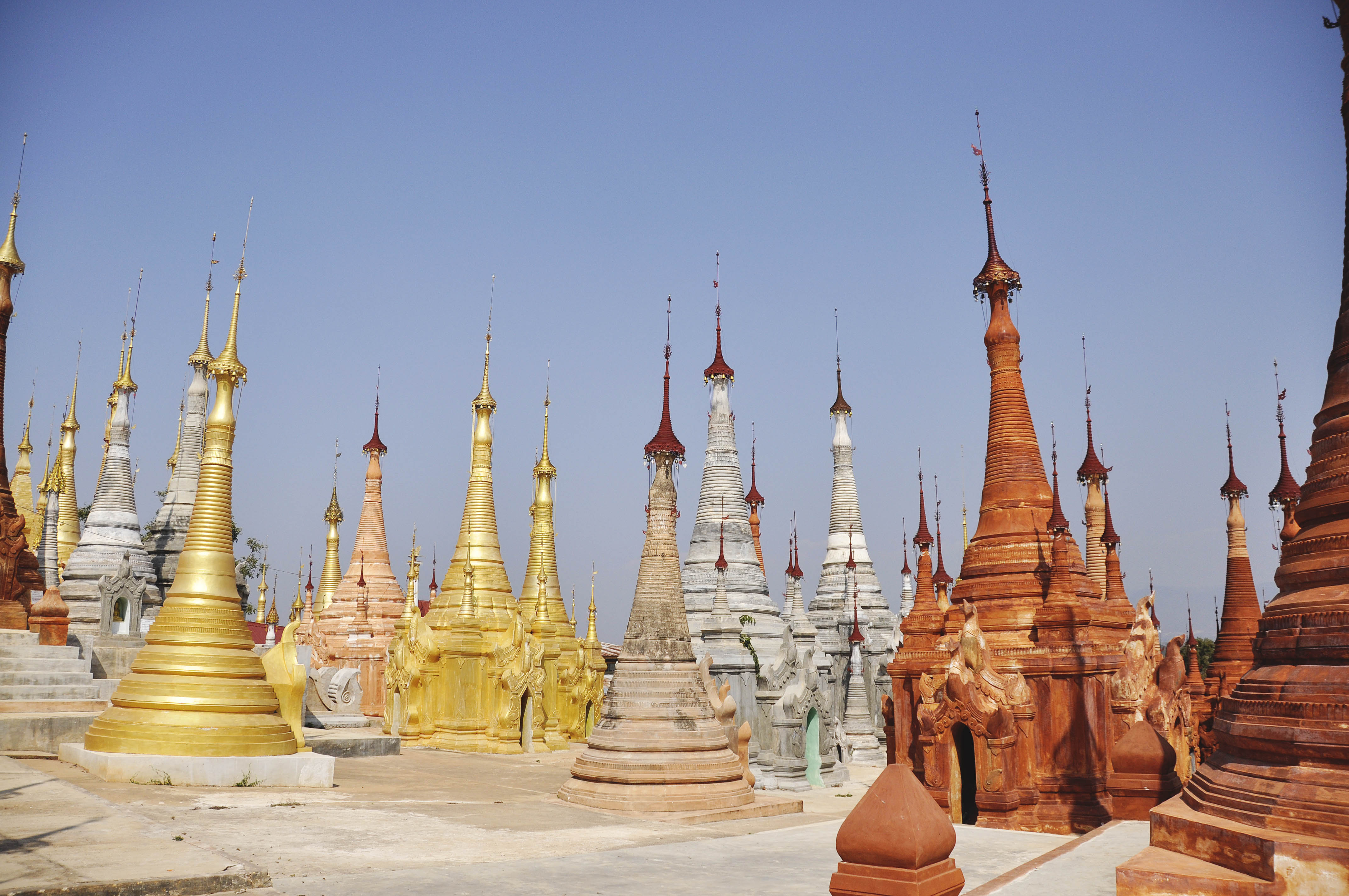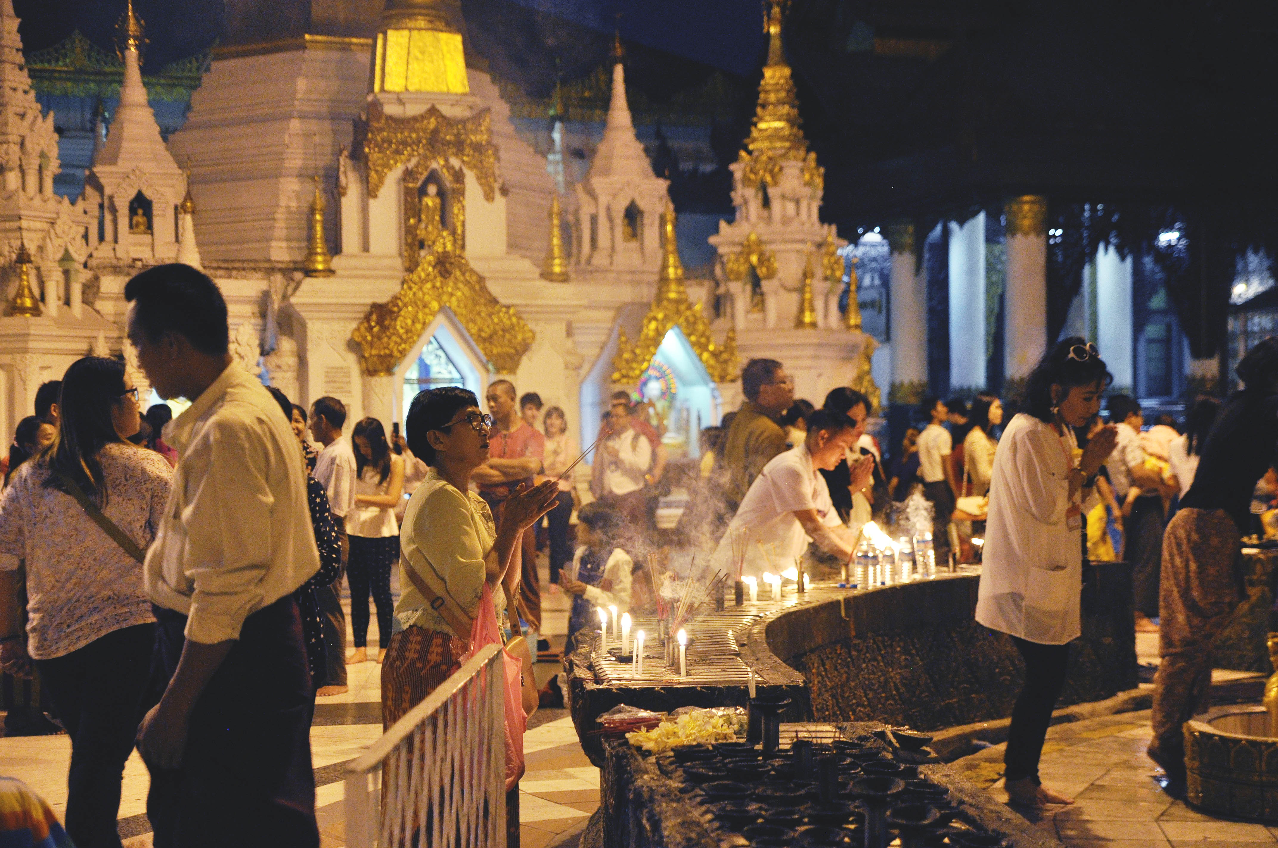 We didn’t stay too long in Yangon, but it was there that we first laid eyes on the glittering gold that Myanmar is famous for – that which adorned the spires and stupas of its pagodas. We entered the monumental Shwedagon Paya, walking among other awestruck tourists, observing the locals who came in with flowers and sat in front of gilded shrines to offer prayers.