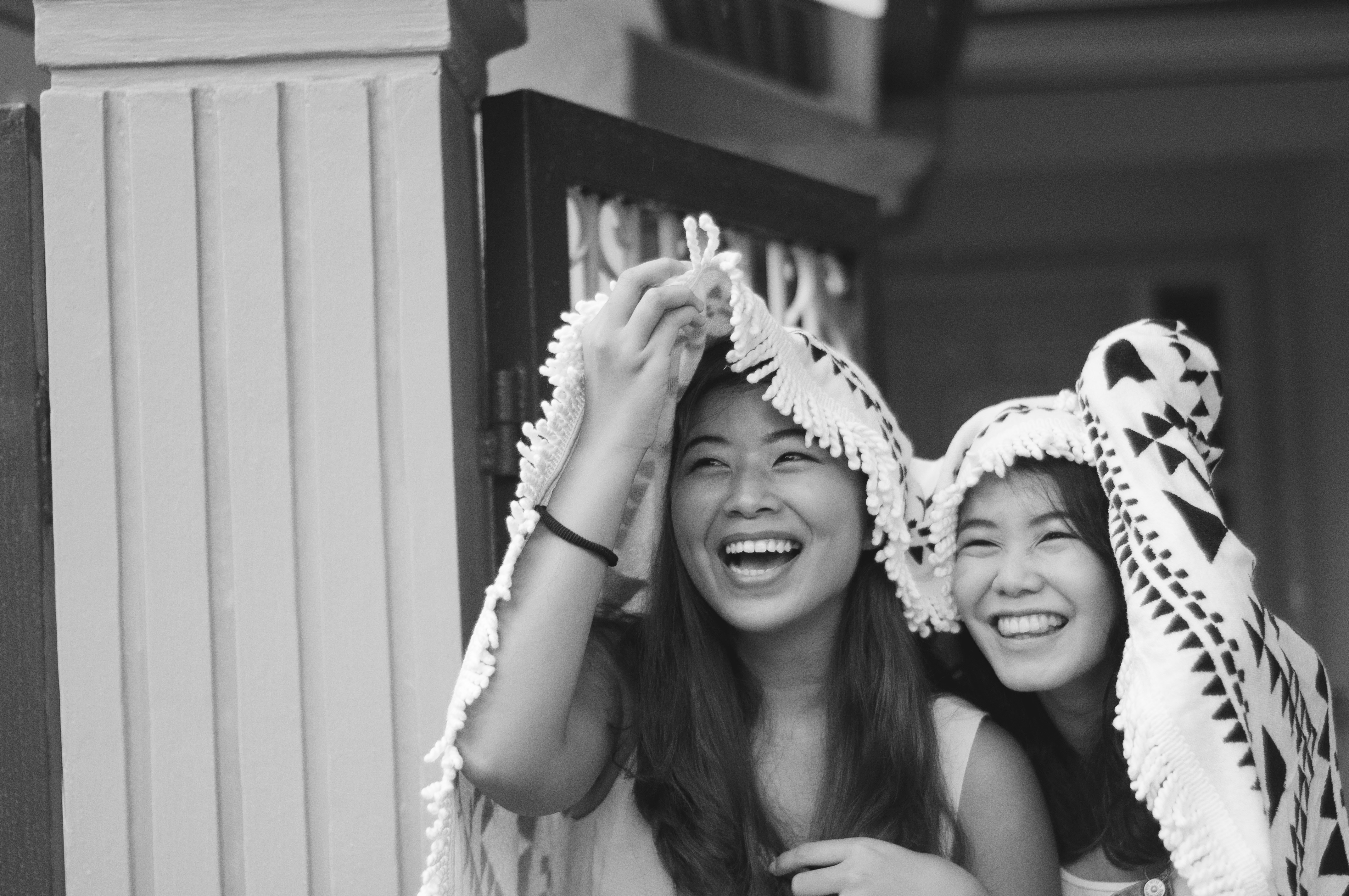 There we all were, wearing our best summery outfits, and outside it was pouring, the sky overcast and gloomy. What were we to do? It was when Pat leaned towards the window in utter dejection, her chin resting on one hand, that I said, “OK, that’s what we’ll be. We’ll be the girls who were hoping to have one last day in the sun, but whose plans were foiled by the rain.” Nothing groundbreaking, but it was all we had.Rainy Picnic_47We had a marvelous time running around the house, trying to figure out how we could bring out that story in photographs. Towards the end, we couldn’t hold back the smiles, and the shoot quickly became about girls just having fun under the rain. When it was all over, we were as happy as could be. We marched indoors, unpacked the wicker basket, and had a lovely picnic in the dining room.
