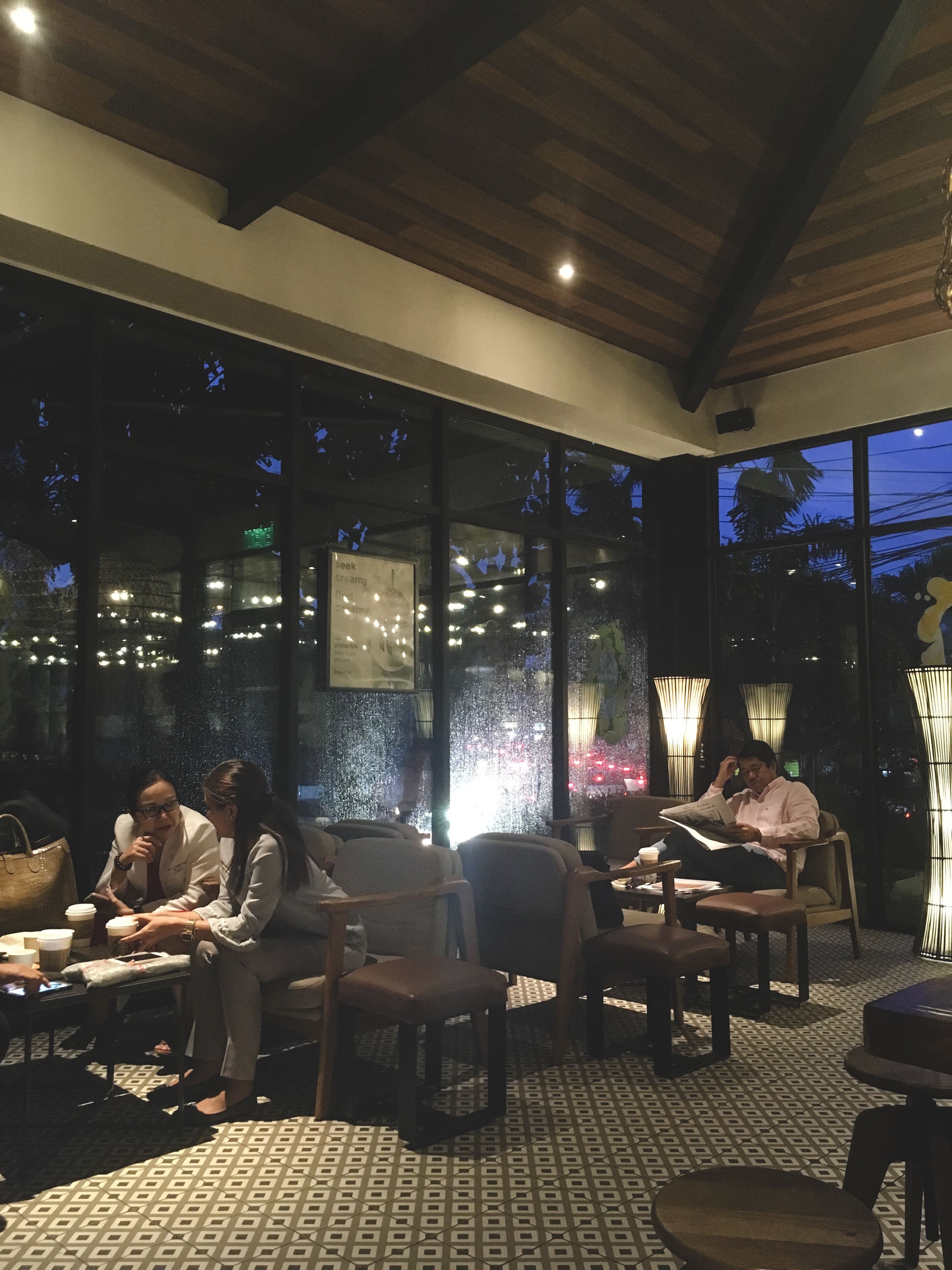 Fast forward to me standing outside a building along Katipunan, wondering how to not get wet. Thankfully, the rainfall was not so strong. The drops were barely visible except where they caught the light from the street lamps and fell on the puddles that caused ripples, distorting the images reflected on the ground. Maybe it was beautiful…but I was too busy trying to figure out a way to get home without taking a second bath.